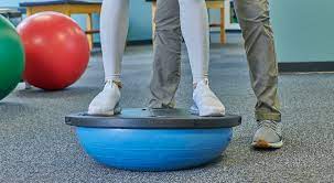 足踝康复专题——前距腓韧带断裂重建术后康复PT-Boge2023年11月27日健康教育, 足踝康复 文章导览 康复阶段分期:早期控制症状,预防并发症;中期进行体能恢复训练;末期进行功能重建训练;重返运动期,进行全身体能强化训练及薄弱部分的纠正训练,预防再发。 前距腓韧带损伤术后康复治疗的目标:减轻疼痛和炎症,促进韧带愈合提高踝关节灵活性逐渐增加力量,恢复完全健康功能性训练,预防再次损伤 温馨提示 由于每个人韧带损伤的情况存在一些差异,此康复指南将提供一般的原则性建议,但在实际应用时,根据您的受伤组织耐受性和对运动的喜好,主治医生将根据您的具体情况进行调整修改。 × 忽略此提醒 原则 全身与局部情况兼顾;功能锻炼以主动锻炼为主,被动锻炼为辅;功能锻炼应循序渐进 × 忽略此提醒 第一阶段:( 术后1周 ) 第一阶段强调休息,不负重,减轻疼痛和肿胀。 目标:控制肿胀缓解疼痛防止肌肉萎缩预防关节僵硬和肌肉紧张步态:在辅助工具下不负重行走进行躯干和上肢的有氧和肌力练习 自我练习的建议和理疗康复:带护具或石膏进行 受伤侧下肢不负重坐着时保持脚抬高直腿抬高训练 10~15次/组 3-4组/日侧抬腿训练(注意骨盆要保持中立位)10~15次/组 3-4组/日俯卧位大腿上抬(骨盆不要上翘) 10次/组,3-4次/日 上班时的姿势推荐 直腿抬高训练 侧抬腿训练 俯卧位大腿上抬 第二阶段:(术后2周) 目标:控制肿胀缓解疼痛防止肌肉萎缩步态:不负重行走逐渐过渡到渐进可耐受负重(在适当辅助具保护下穿固定靴进行)预防关节僵硬和肌肉紧张足趾屈伸活动 自我练习的建议和理疗康复: 足趾伸屈训练: 50次/组,3-4组/日第一阶段动作继续训练小腿三头肌等长收缩练习继续间歇性抬高患肢冷疗:用冷敷袋进行冷敷,10分钟每次,如遇到冰敷已达不到消肿的作用时,可停止。 足趾伸屈训练 小腿三头肌等长收缩 此时以下部分的康复需要到医院或康复中心进行: 疼痛无缓解或加剧时,需要理疗治疗,可以减轻肿胀,缓解疼痛,改善血液循环,促进韧带愈合 肿胀严重时,需要做电刺激治疗以上自我练习不理解时想要进行进一步专业人员介入康复的 第三阶段:(术后4周) 目标:石膏拆除,开始踝关节主被动活动度练习(限制中立位以外的背屈和外翻)步态:可耐受负重步行增强踝关节周围肌肉力量恢复踝关节活动度 自我练习的建议: 踝泵训练:50次/组,3-4组/日第一阶段动作继续训练患肢可耐受逐步负重行走:活动量5-30分钟/组,2-3组/日冷疗:用冷敷袋进行冷敷,10分钟每次,如遇到冰敷已达不到消肿的作用时,可停止。 踝泵训练 踝关节跖屈和背屈抗阻训练 此时以下部分的康复需要到医院或康复中心进行: 疼痛无缓解或加剧时,需要理疗治疗,可以减轻肿胀,缓解疼痛,改善血液循环,促进韧带愈合肿胀严重时,需要做电刺激治疗以上自我练习不理解时想要进行进一步专业康复介入的 第四阶段:(术后6-8周) 目标:继续控制水肿和疼痛恢复踝关节背屈活动度,逐步内翻和跖屈(视手术医生给的时间窗)减轻疼痛减少瘢痕粘连和肌筋膜受限步态:平面上无辅助状态下恢复正常步态 自我练习的建议: 踝关节跖屈和背屈抗阻训练 10次/组 3-4组/日踝关节内翻和外翻抗阻训练 30次/组 3-4组/日步态:无辅助状态下行走训练,最好有面镜子,不要过长时间站立和行走踝关节活动度训练:主动背屈,外翻,跖屈,内翻 ;膝关节顶墙踝背屈活动训练:注意后跟不抬起用踝关节做圆周运动,描绘字母(A到Z)运动足内在肌的训练: 毛巾抓握 每天3-4组,每组10-15次柔韧性训练:比目鱼肌和腓肠肌 每天3组,每组保持15-30秒本体感觉训练:双脚站在一不稳定平面尽力保持平衡,每天3-4组,每组保持到最大时间 踝关节跖屈和背屈抗阻训练 踝关节内翻和外翻抗阻训练 膝顶墙踝背屈活动度训练 足内在肌训练 不稳定平面双脚维持平衡 小腿三头肌的拉伸 此时以下部分的康复需要到医院或康复中心进行: 踝关节松动术(促进关节角度恢复)关节活动不足,影响正常步态肿胀和疼痛仍存在,需要做电刺激治疗当肌肉紧张或短缩时,在医院进行部分肌肉拉伸借助器械进行训练时,如腿部的力量强化运动固定自行车、低冲击进行耐力训练时。以上自我练习不理解时想要进行进一步专业康复介入的 第五阶段:(术后8-12个周) 目标:踝关节活动度恢复正常支具保护下可以独立活动活动后不出现水肿在台阶和不稳定平面上恢复正常无痛的步态单腿提踵可达10次慢跑过渡到快跑练习强化踝关节周围肌肉力量 自我练习的建议: 继续上述练习泡沫轴放松小腿三头肌本体感觉训练:单腿站立:睁眼和闭眼在不稳定平面上单腿站立在不稳定平面上站立进行抛接球练习,单腿练习和双腿练习闭链模式练习:皮筋抗阻侧向跨步练习 每天3-4组,每组10-15次 泡沫轴放松 平衡训练 上下台阶训练 侧向跨步 此时以下部分的康复需要到医院或康复中心进行: 更高难度的平衡和本体感觉训练步态优化当有疼痛,肿胀反复时,进行理疗的治疗和体育活动专项结合的特定训练功能性运动测试 第六阶段:(术后12-16周) 目标: 跑步到全速跑(冲刺) 多平面运动 无恐惧的完成高水平的运动和转向 无痛无恐惧的完成技巧动作 恢复完全的体育活动和高水平活动 自我练习的建议: 继续上述练习活动时佩戴踝部护具耐力训练:跳绳(双腿跳,交替跳,单腿跳)本体感觉:平面上单腿站立(由最稳定的平面到最不稳