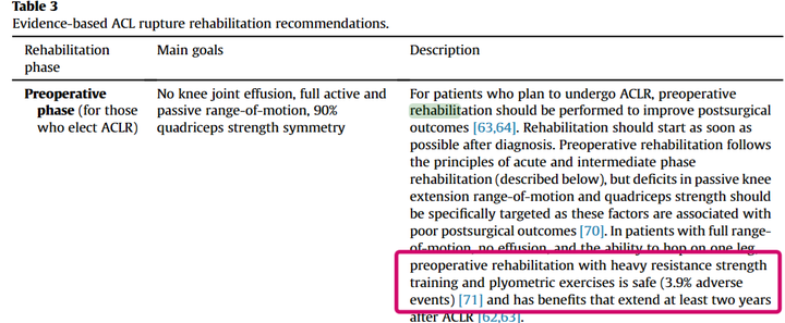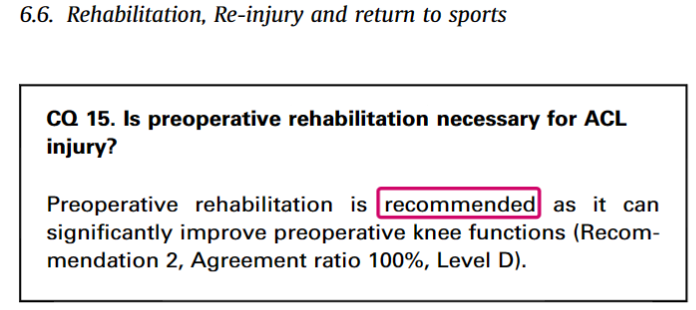 JOA的指南综述了文献报道总结出ACL术前康复的理由: