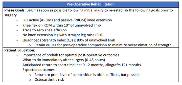关于ACL术前需要进行康复的理由